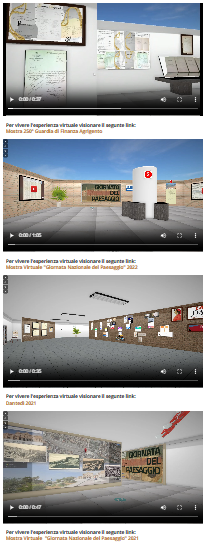 L'Archivio di Stato di Agrigento ha “allestito” diverse mostre virtuali grazie alla piattaforma artsteps.com, accessibili tramite la sezione virtual tour del sito, dove sono presenti anche dei video esemplificativi, o direttamente tramite i link seguenti: